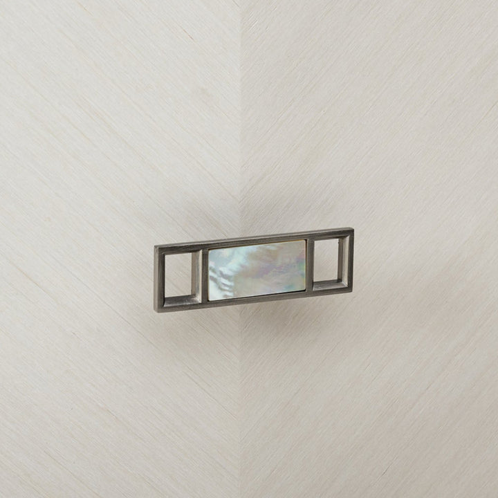 - Hardware: Casted zinc knobs in brushed hairline pewter with mother of pearl inlay