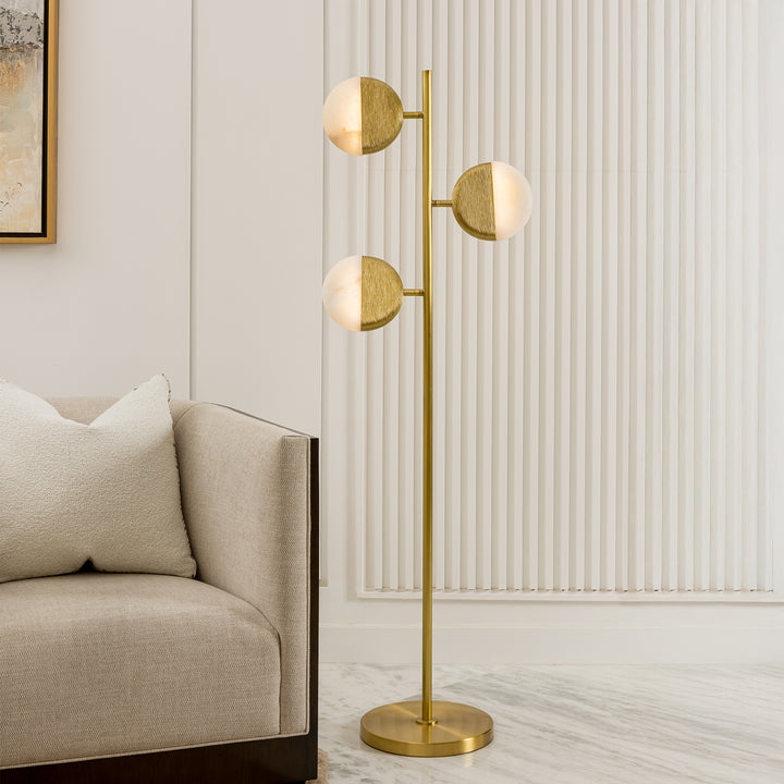 - Material: Alabaster and steel in an antique brass finish