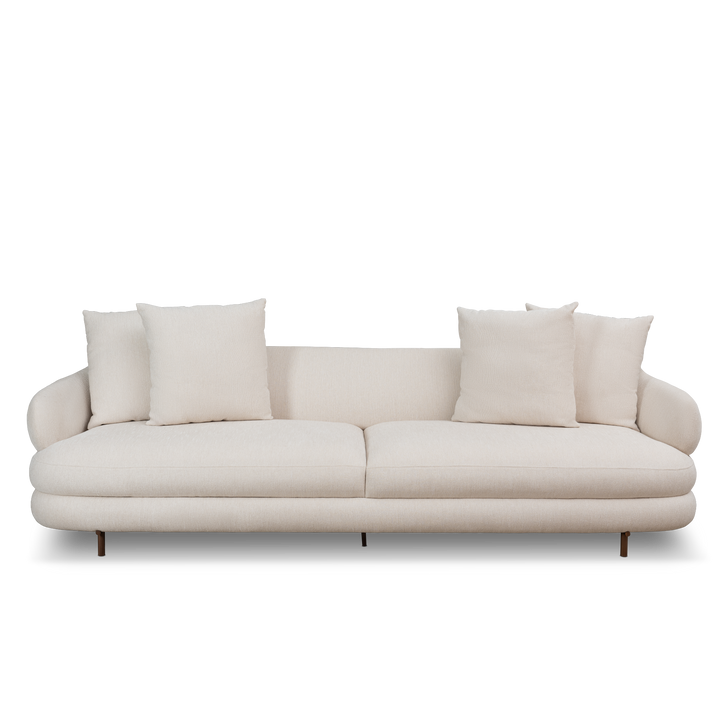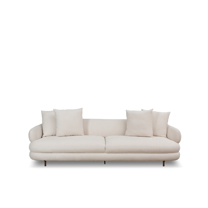 Combining style and comfort, this sofa brings a refined touch to any room. Featuring laminated noguera-finished legs, it perfectly balances elegance and functionality, making it a standout centerpiece in modern living spaces.