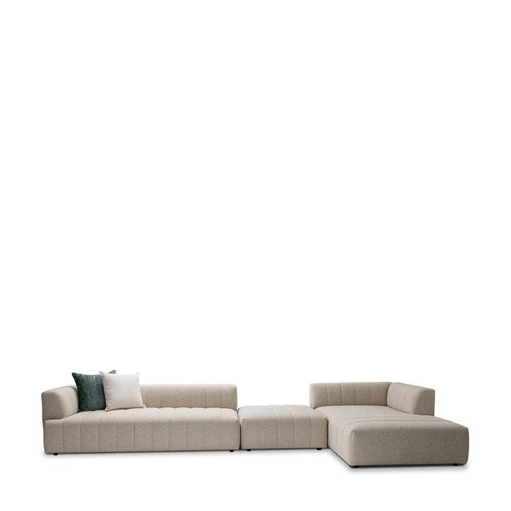 Upholstered in vista beige fabric, the sectional sofa offers a clean, modern look that works well in any space. It features subtle linear detailing on the seating, enhancing the overall design.