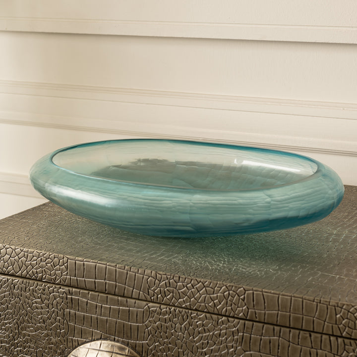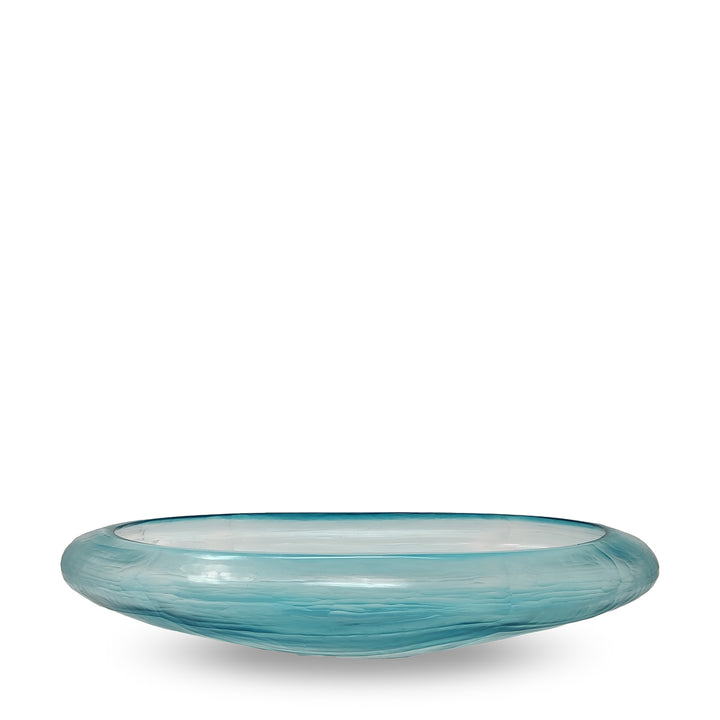 Crafted from glass in a serene ocean blue tone, this bowl captures the essence of fluid elegance. The cubi cut enhances its soft, wavelike texture, giving the surface a sense of variation.