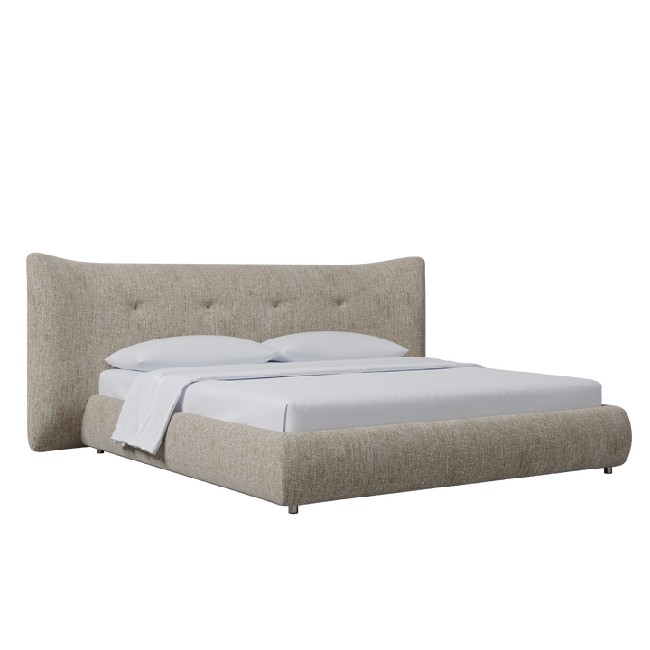 Upholstered in coco angora fabric, the headboard serves as a focal point that enhances the bed’s overall design. Stainless steel accents in an antique brass finish add a sophisticated, timeless touch perfect balance between style and comfort.