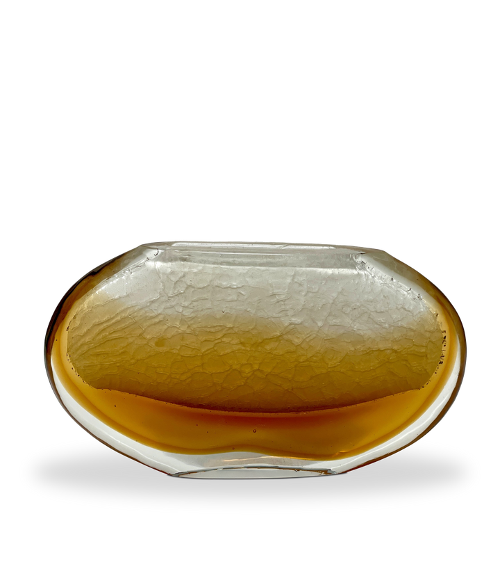 Expertly handcrafted from clear glass in a copper finish, this vase showcases the captivating frozen fire cut. The gradient tones and natural variations reveal artisanal craftsmanship, making each piece truly unique.