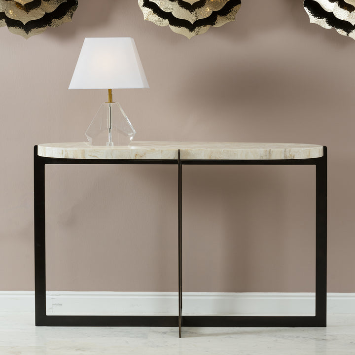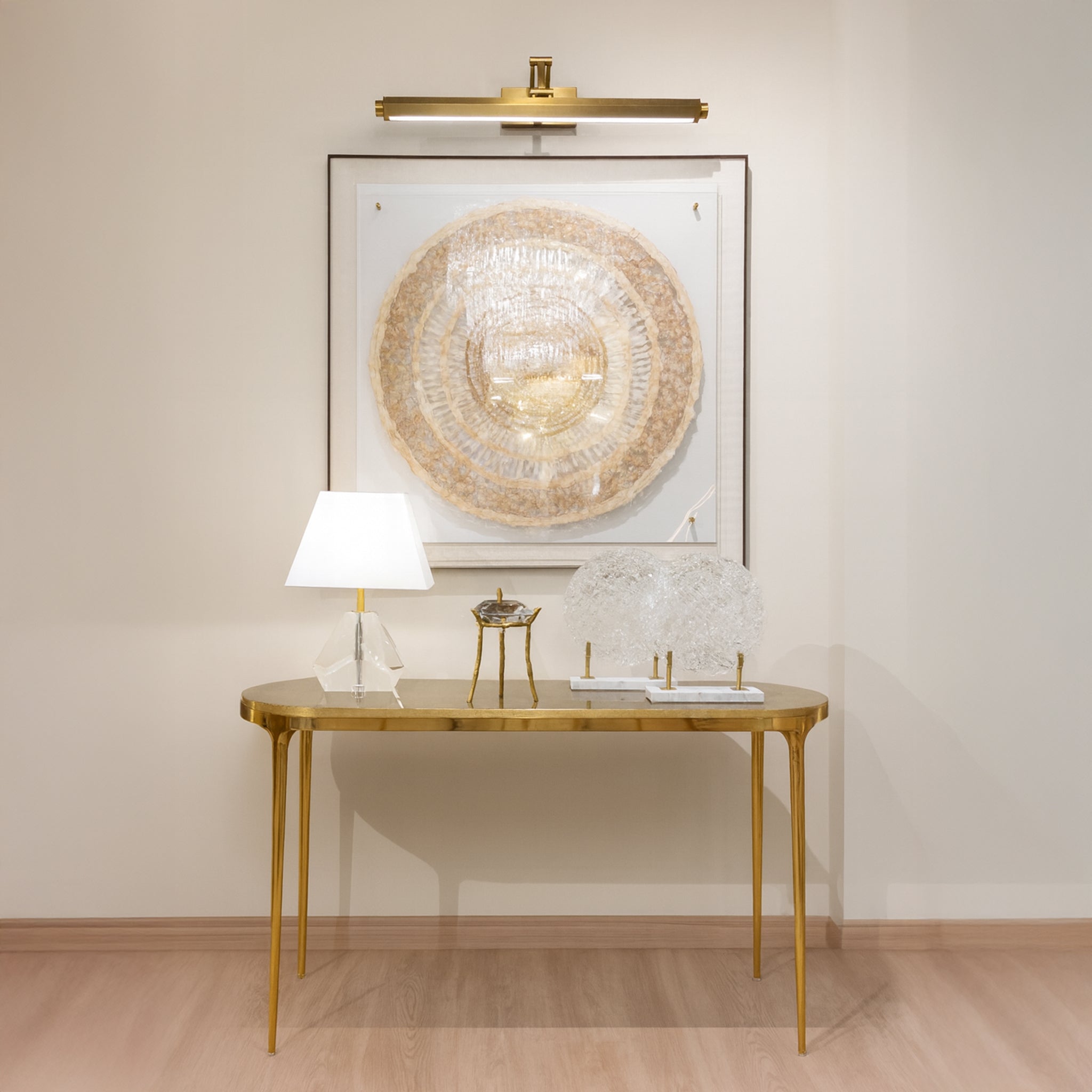 Celebrating the glamour of art deco, this lamp combines a sculptural crystal base with bold geometric form. Metallic detailing adds depth and contrast, enhancing its decorative appeal.