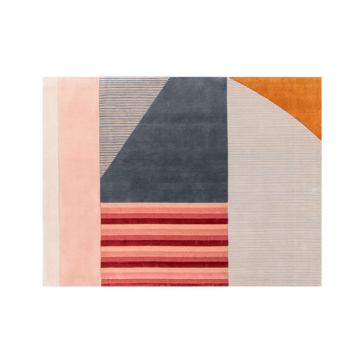 The Euclid carpet is a vibrant tapestry, celebrating the interplay of color and form. Its bold geometric pattern and contrasting hues create a dynamic and visually striking piece. Hand-tufted with precision, this carpet offers a luxurious and tactile experience.