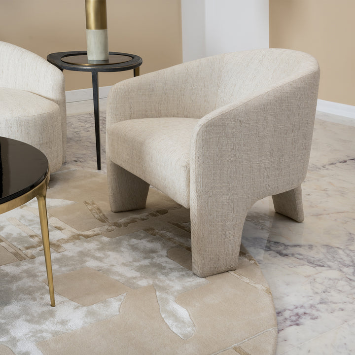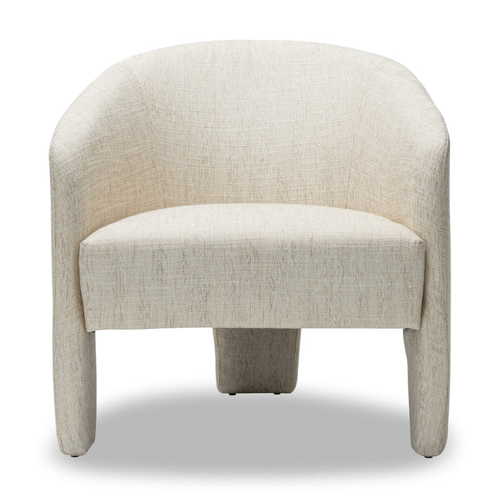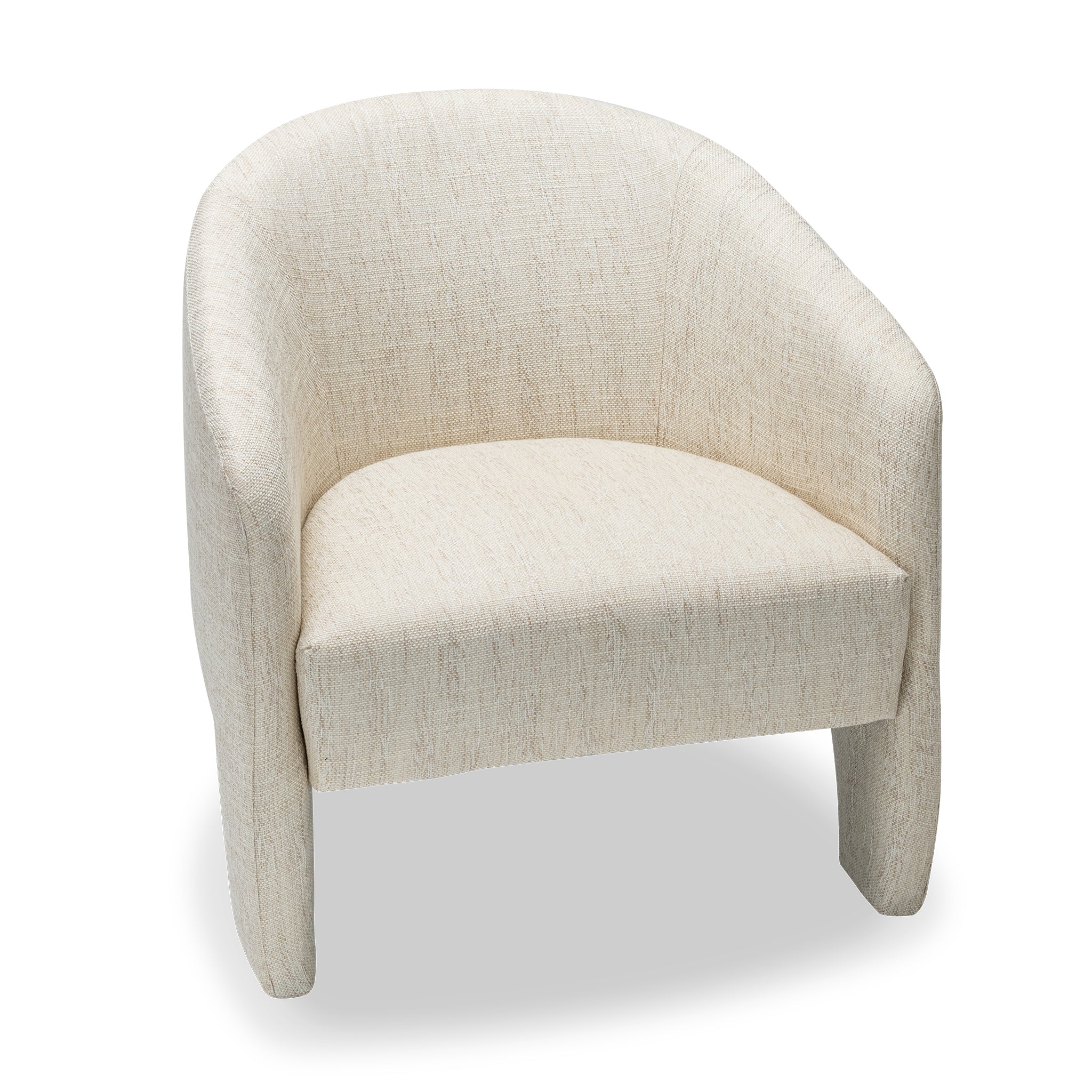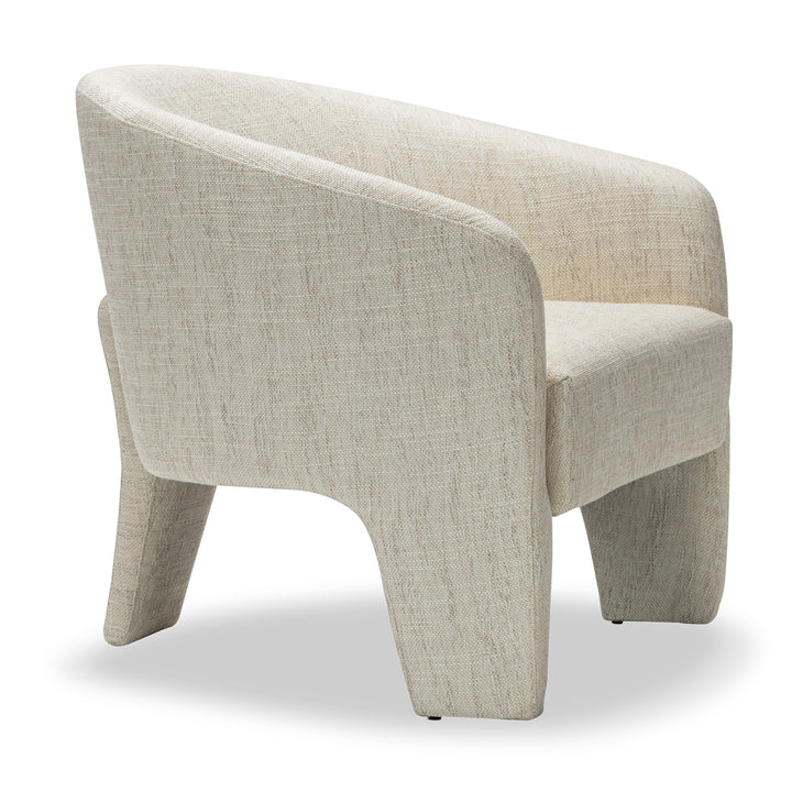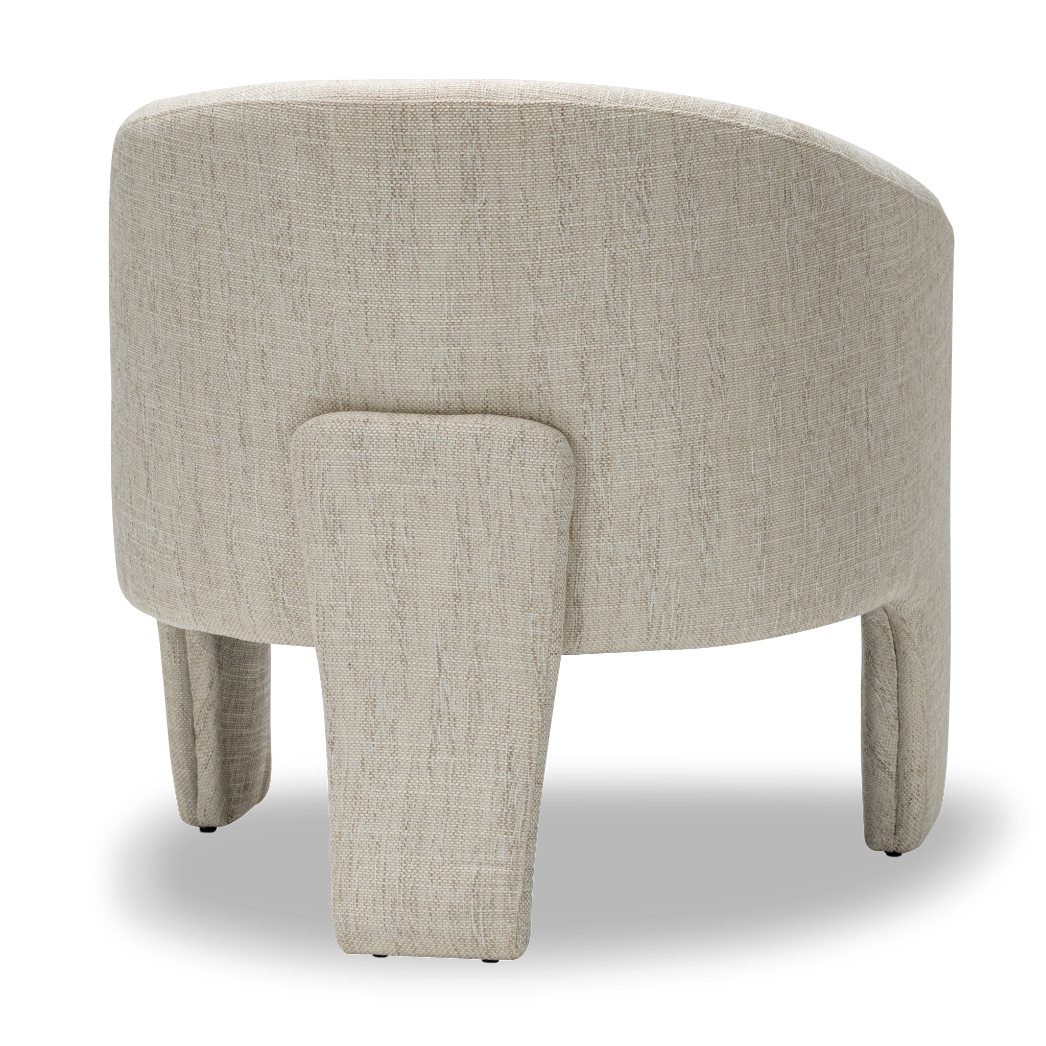 Upholstered fully in formentera linen, this chair has a three-leg design with front legs that flow from the backrest and a fully visible rear leg, giving it a strong and unique shape. It offers both comfort and style that fits well in any room.