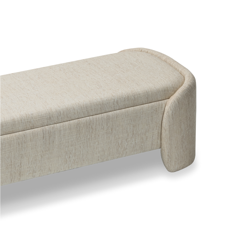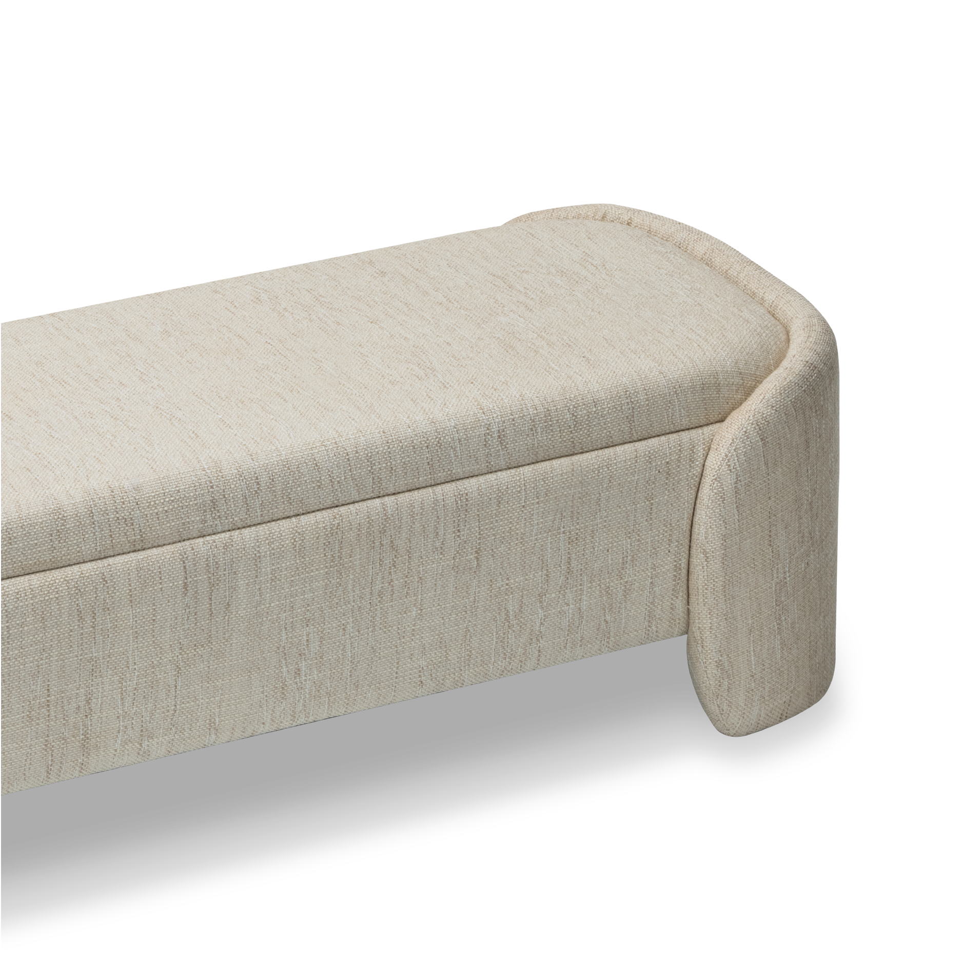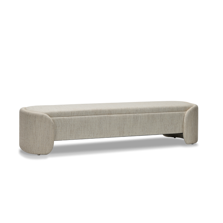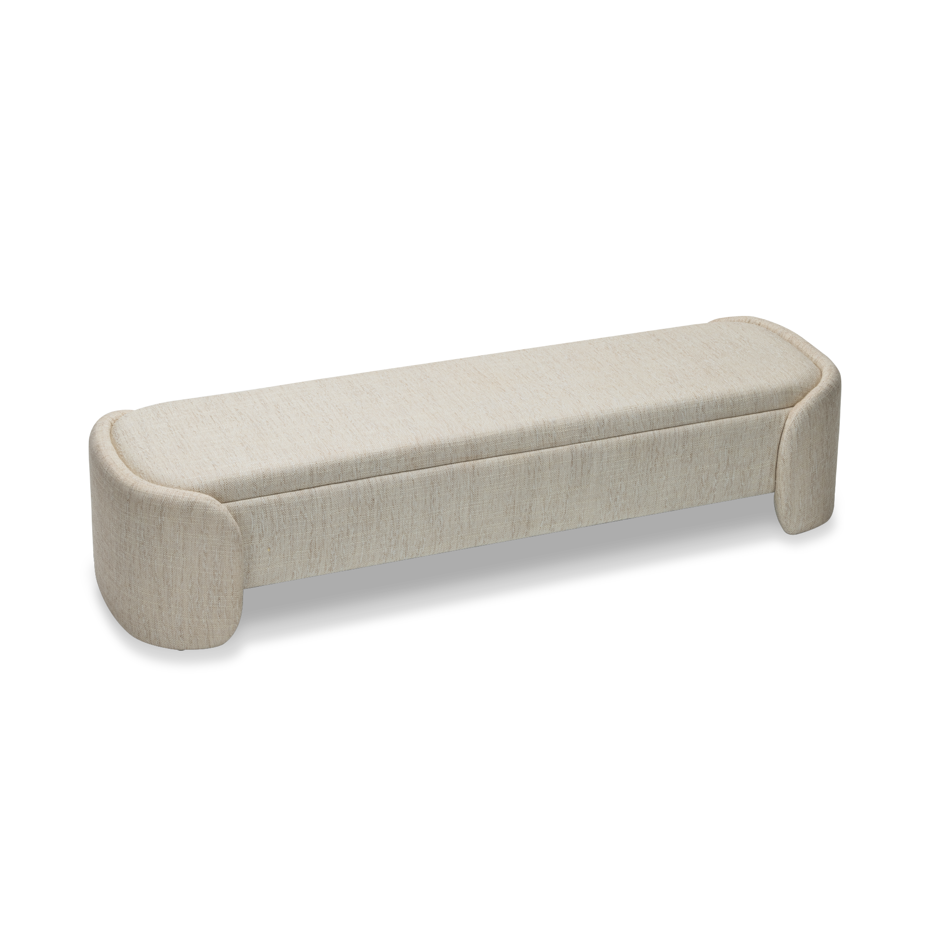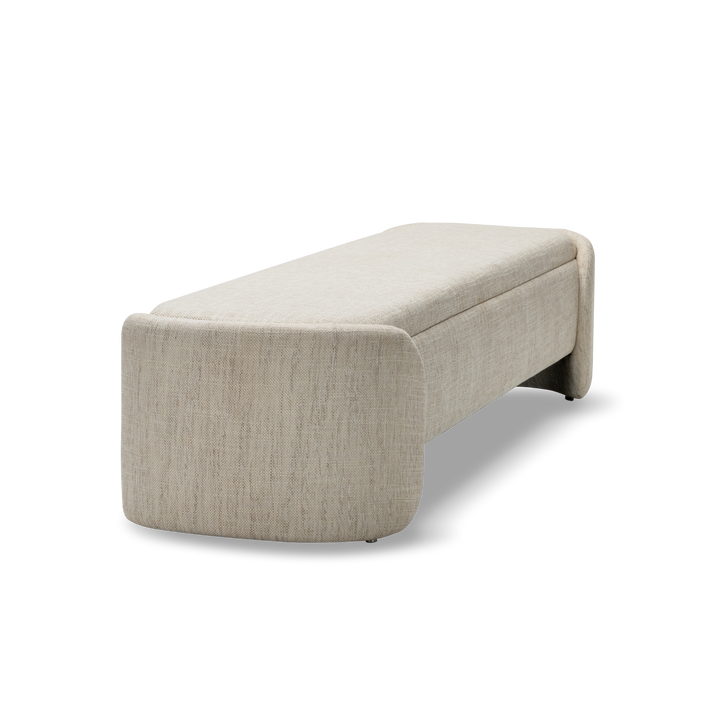 Upholstered in formentera linen fabric, this elegant bench features gently curved corners. Its minimalist silhouette makes it perfect for placement at the foot of a bed, along a hallway, or as additional seating in any living space.