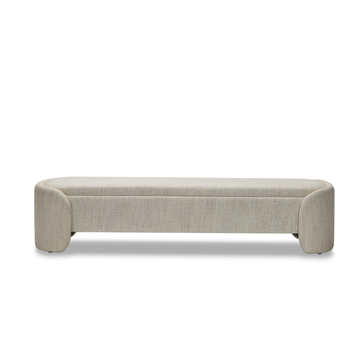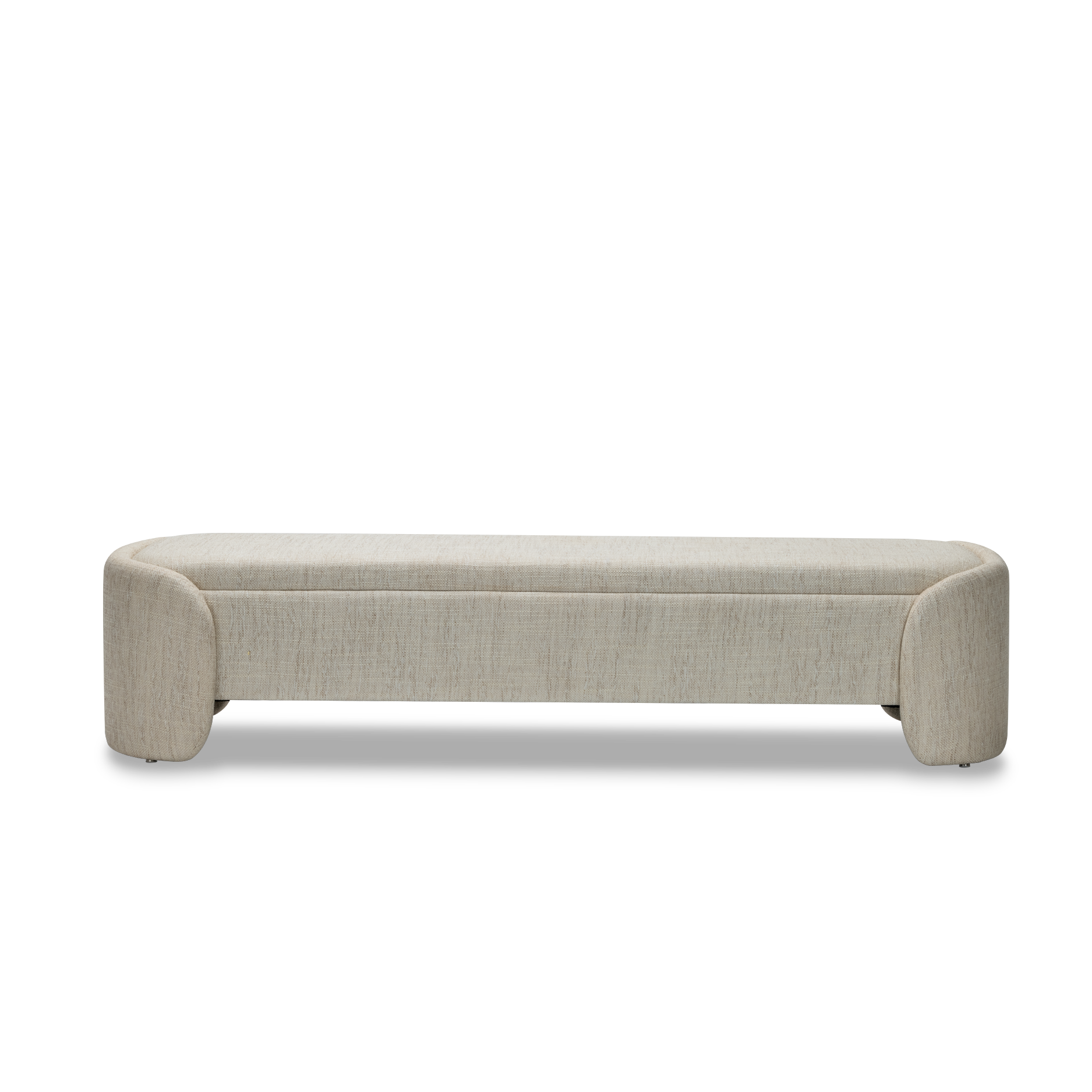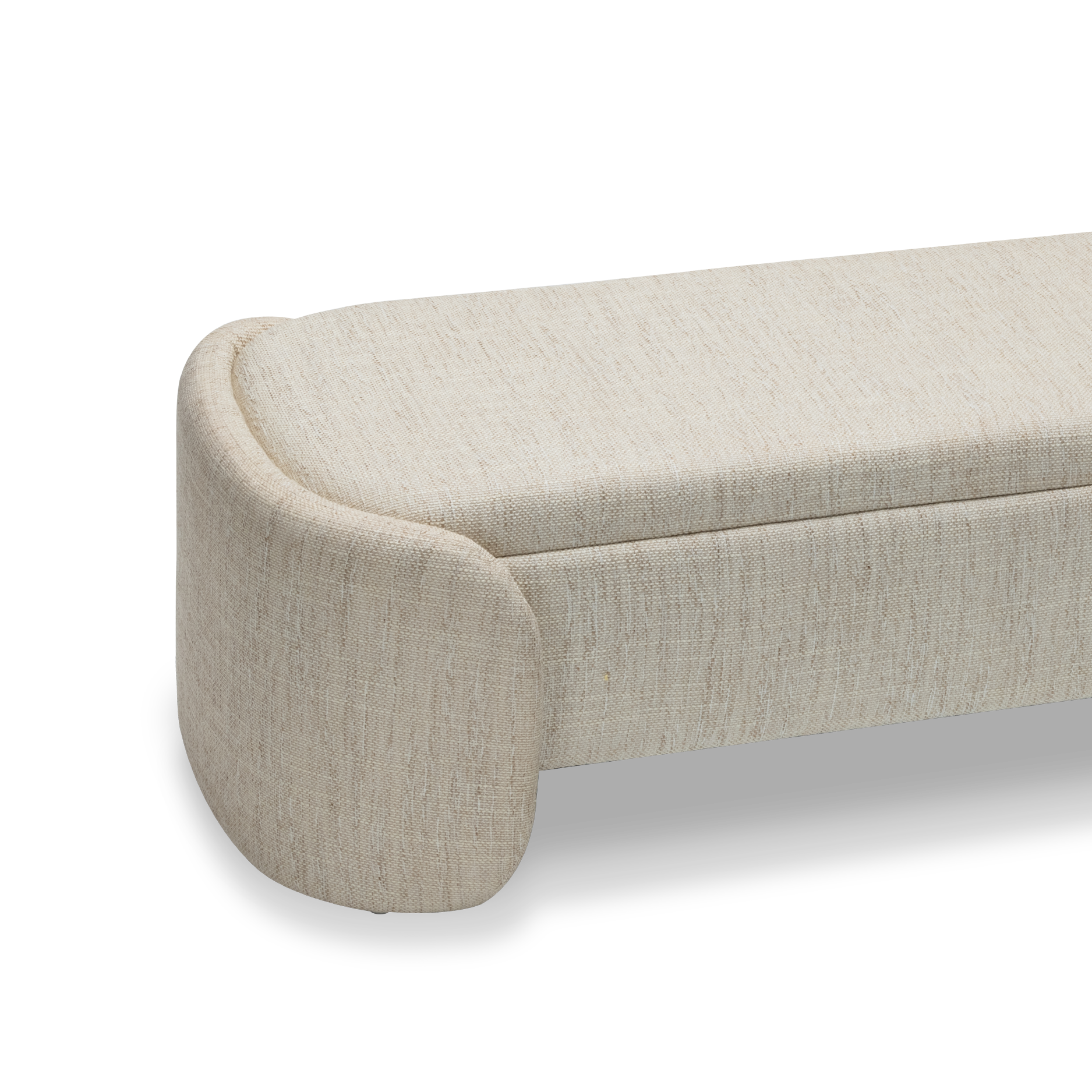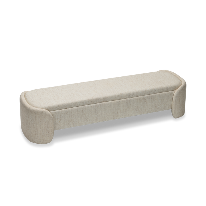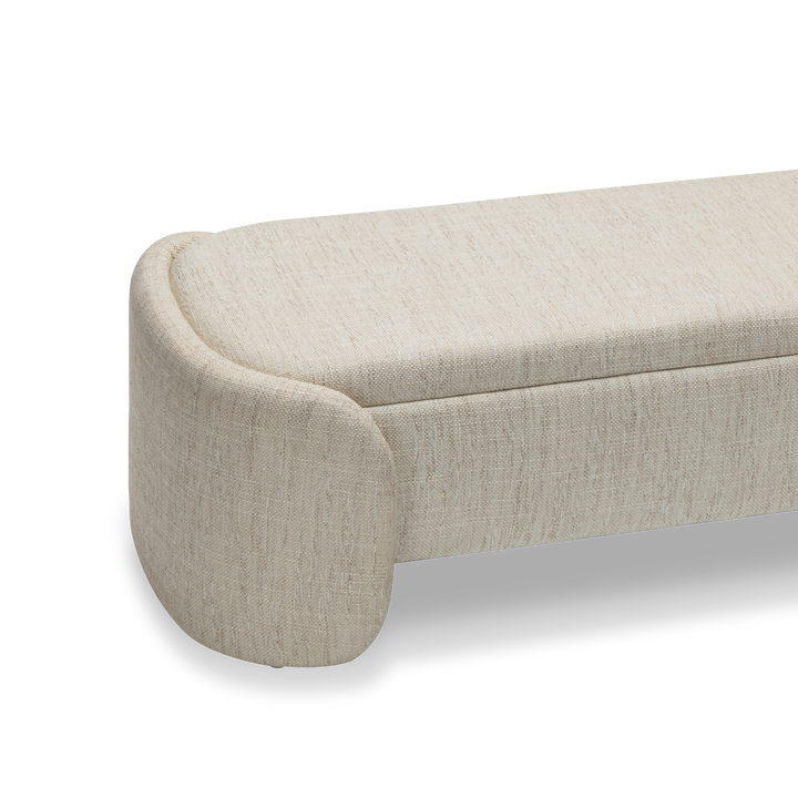 Upholstered in formentera linen fabric, this elegant bench features gently curved corners. Its minimalist silhouette makes it perfect for placement at the foot of a bed, along a hallway, or as additional seating in any living space.