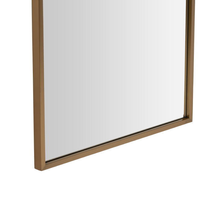 The Genoa Large Wall Mirror features a stainless steel frame with a brushed brass finish. This elegant piece adds a touch of luxury to any room, beautifully reflecting light and creating a sense of space. Its contemporary design complements various decor styles, making it a perfect addition to a chic and modern home.
