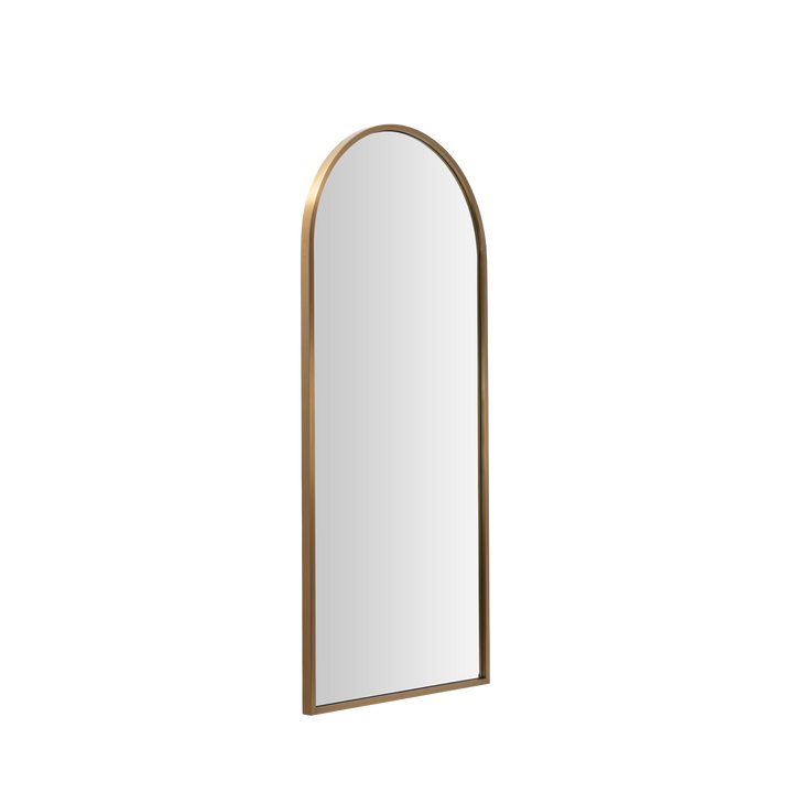 The Genoa Medium Wall Mirror boasts a sleek stainless steel frame with a brushed brass finish. This elegant mirror enhances any space with its sophisticated design, offering both style and functionality. Its tall, reflective surface creates a sense of openness and light, making it a striking addition to modern interiors.