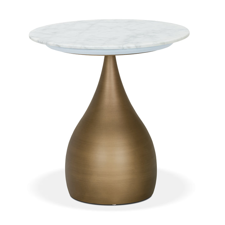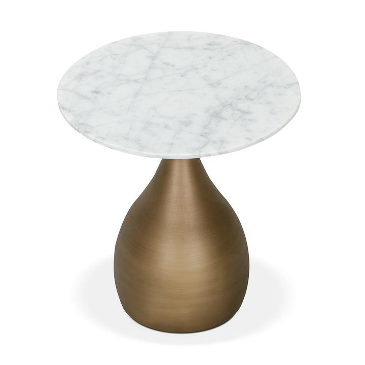 Featuring a white natural marble top, this low end table showcases the timeless beauty of stone with subtle veining and a polished finish. The electroplated brushed brass frame in stainless steel enhancing both modern and classic interiors.