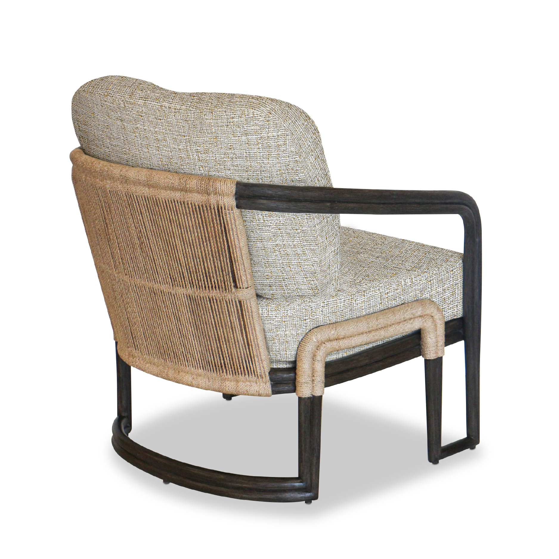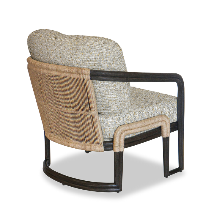 Upholstered in chic white gold fabric, the sturdy rattan base in a matte espresso finish adds a natural touch. The abaca fiber rope backing, woven in 3–4 mm strands making it a stylish and timeless addition to your home.