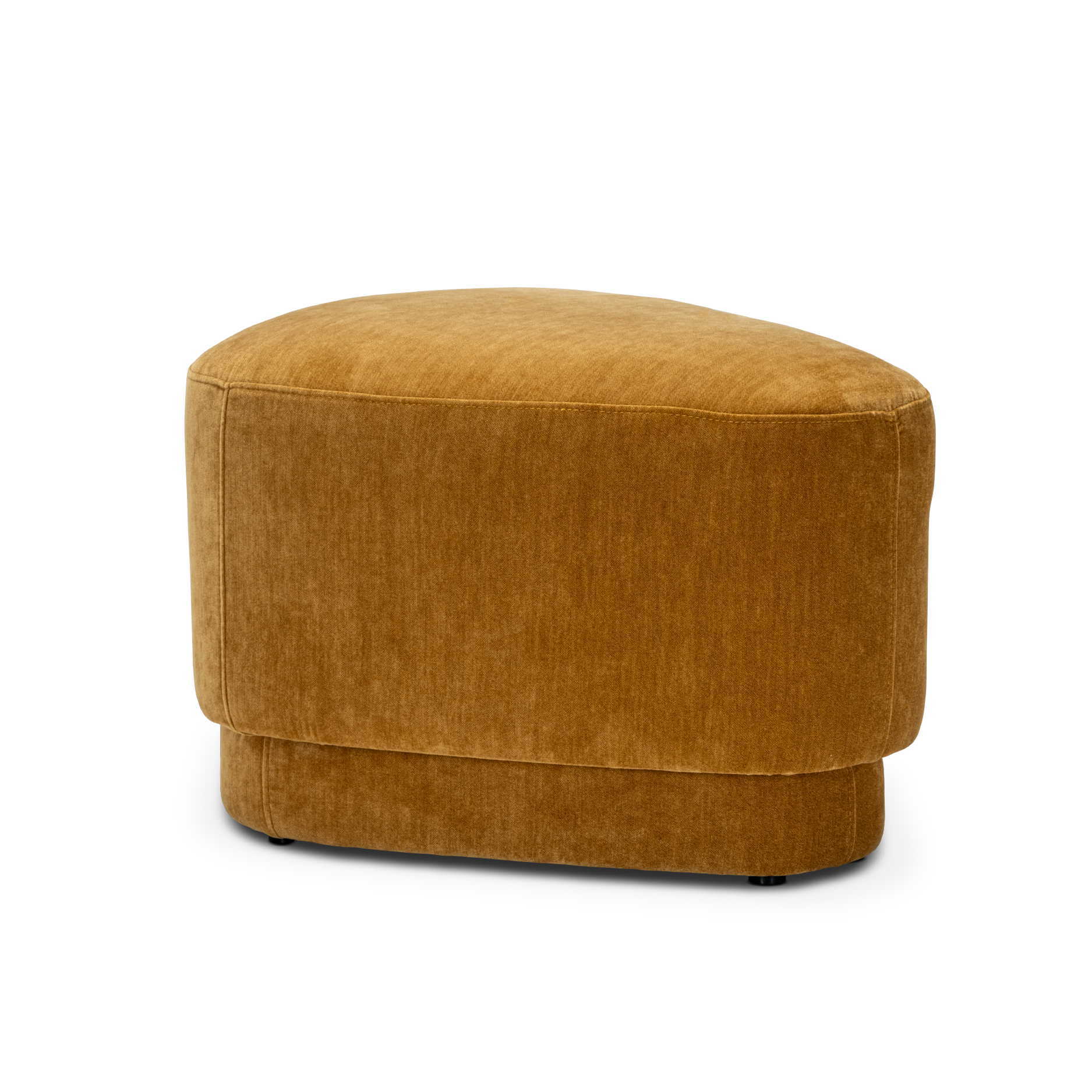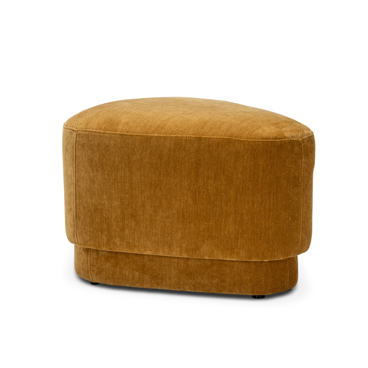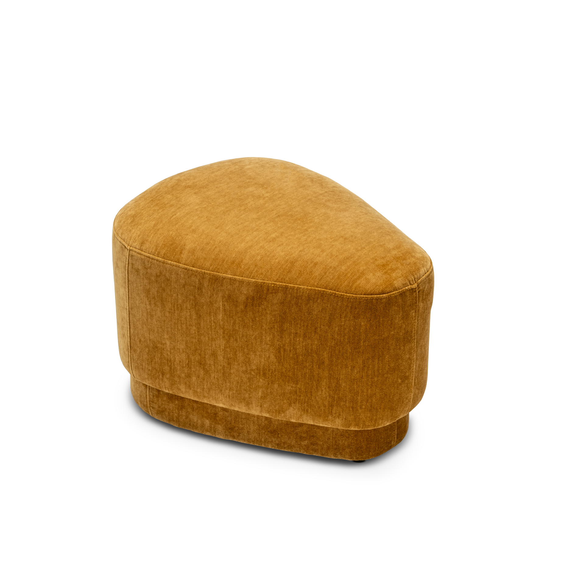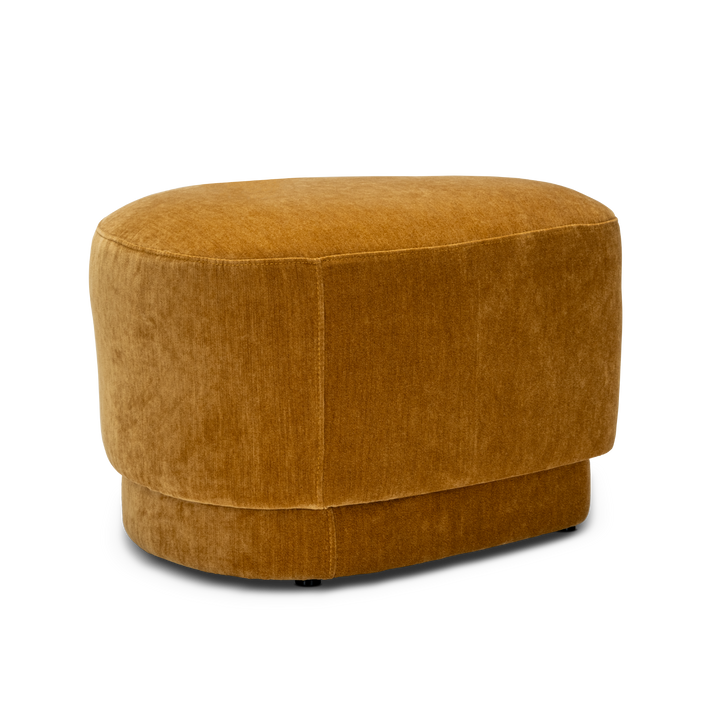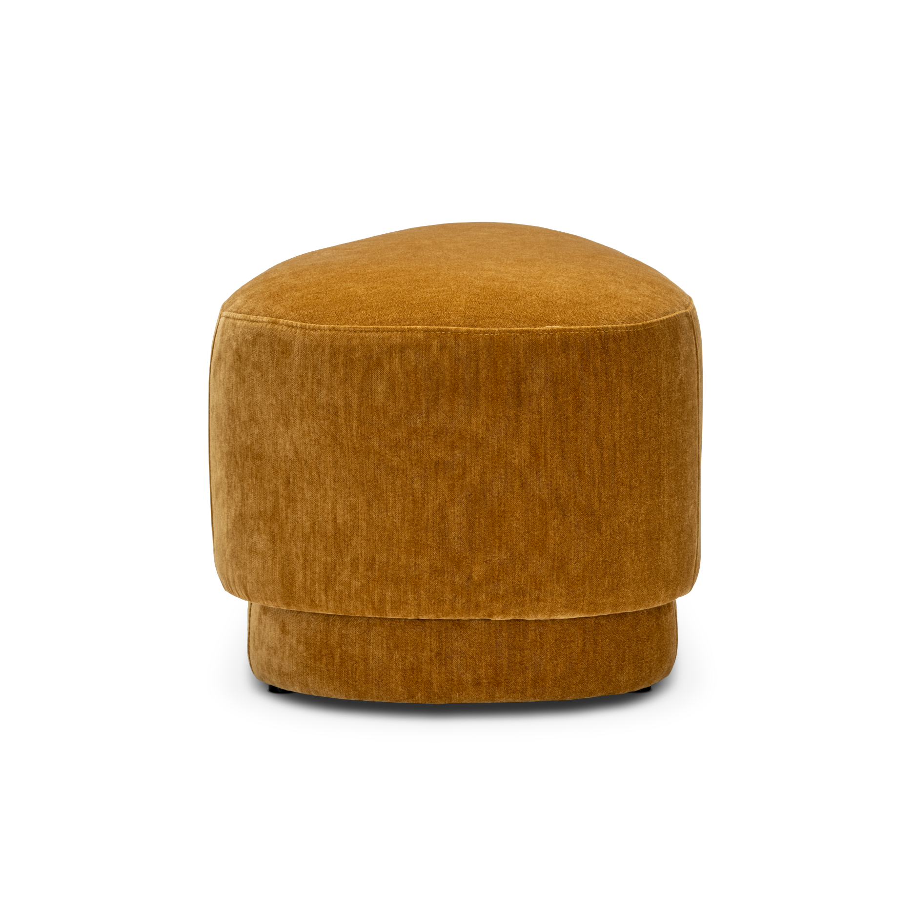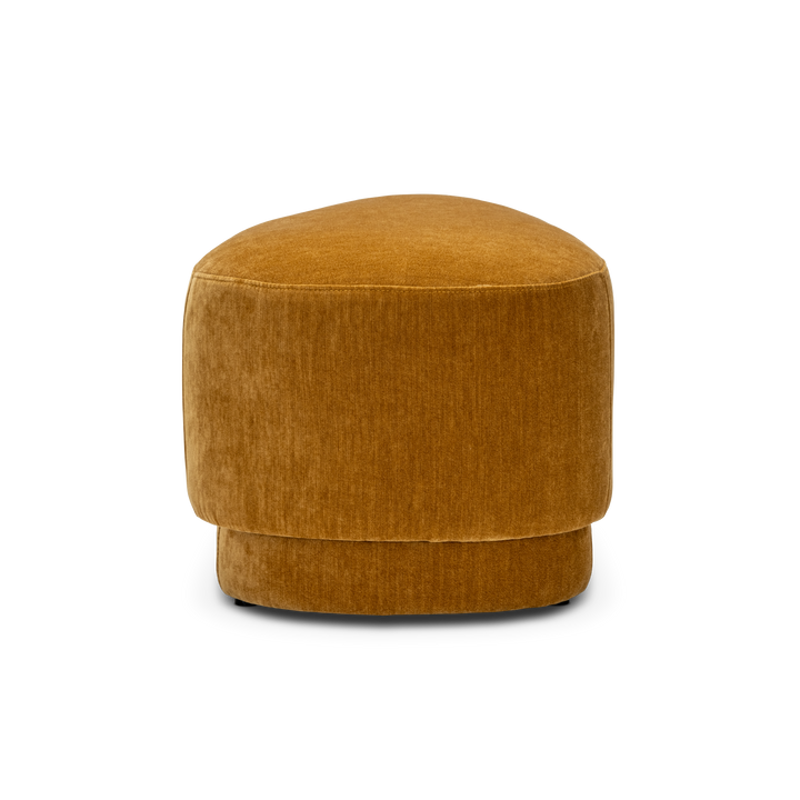 Upholstered in gideon fennelseed fabric, this ottoman showcases an organic form that brings a modern touch to any space.