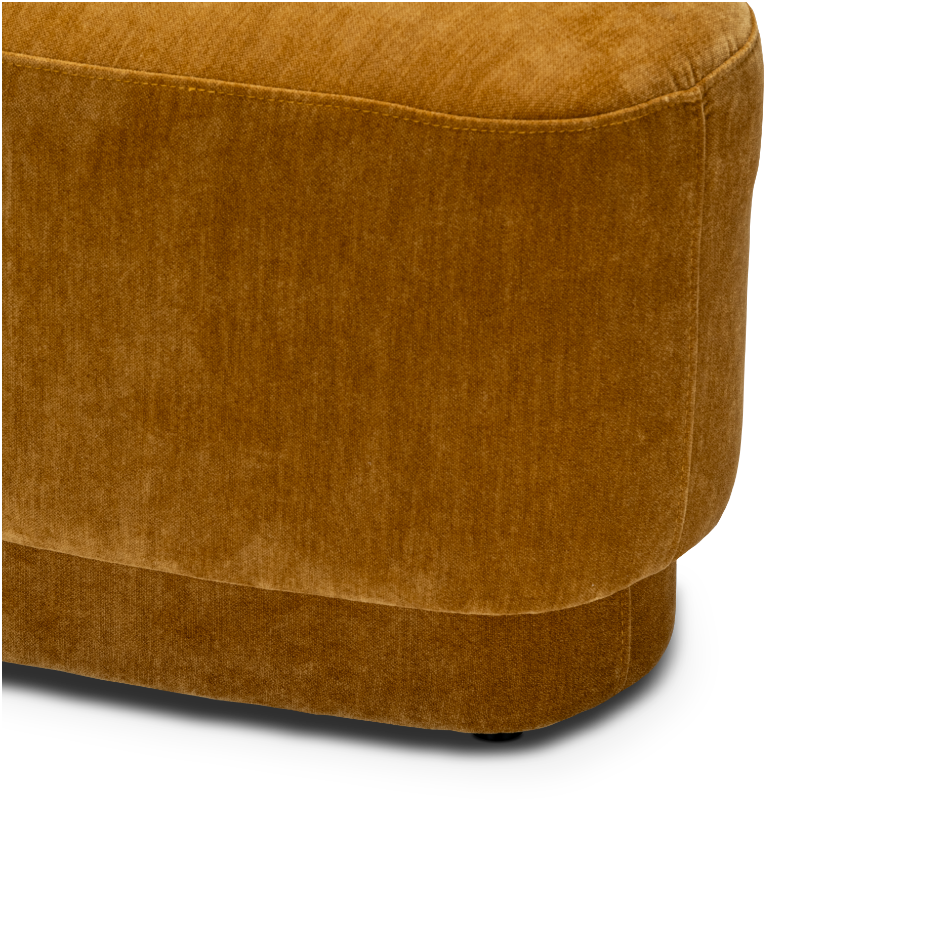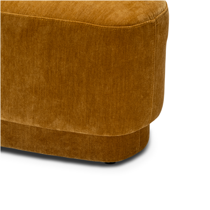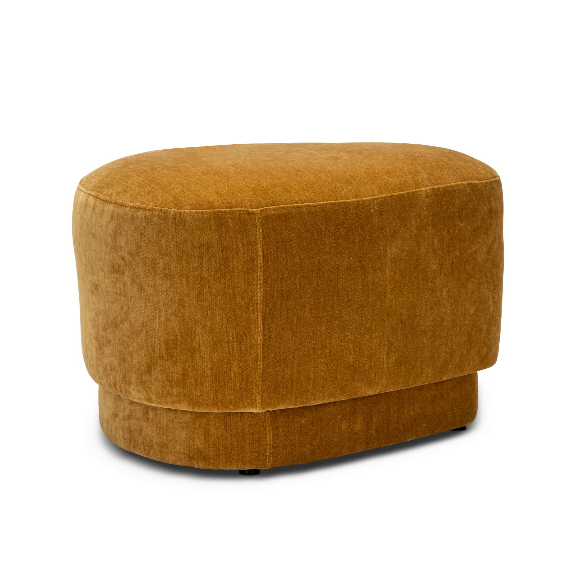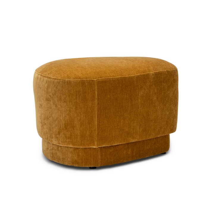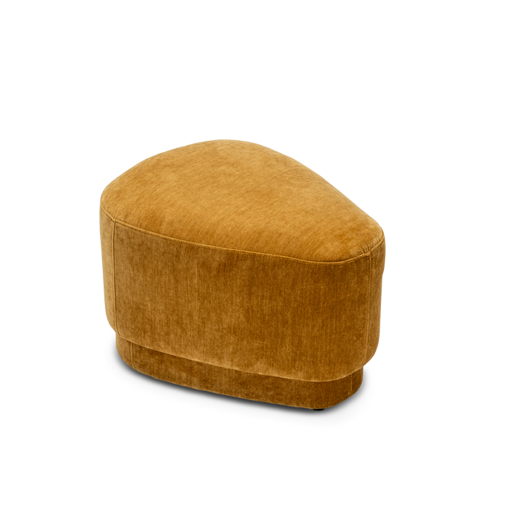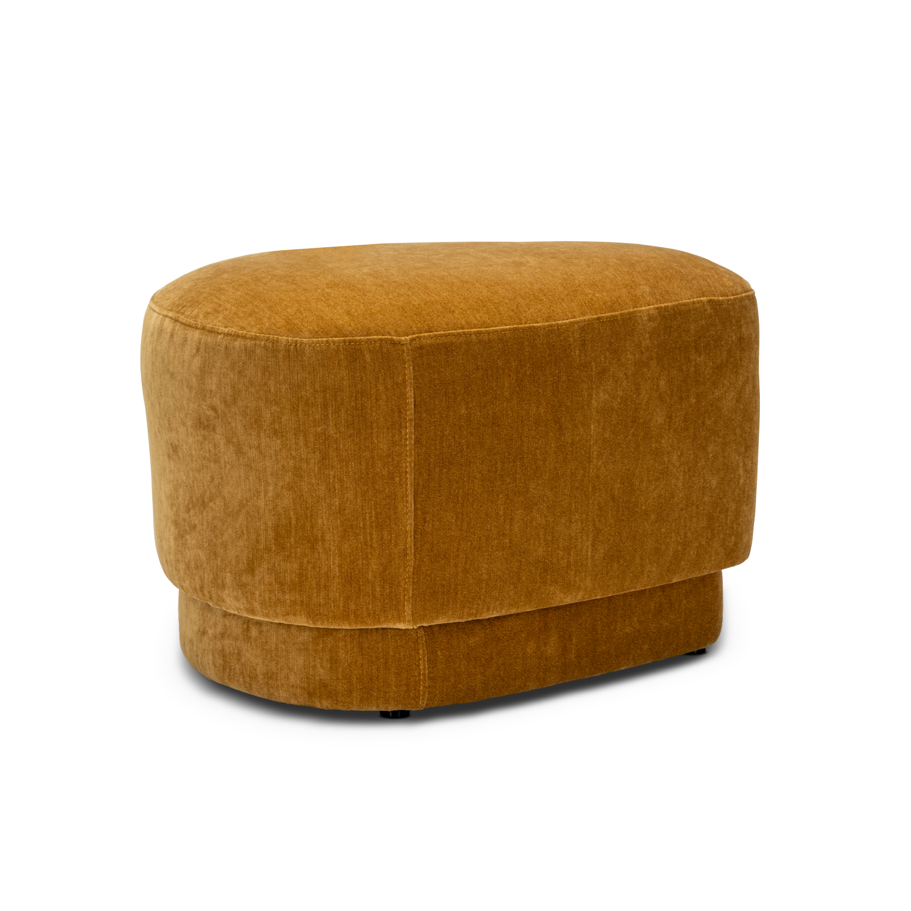 Upholstered in gideon fennelseed fabric, this ottoman showcases an organic form that brings a modern touch to any space.