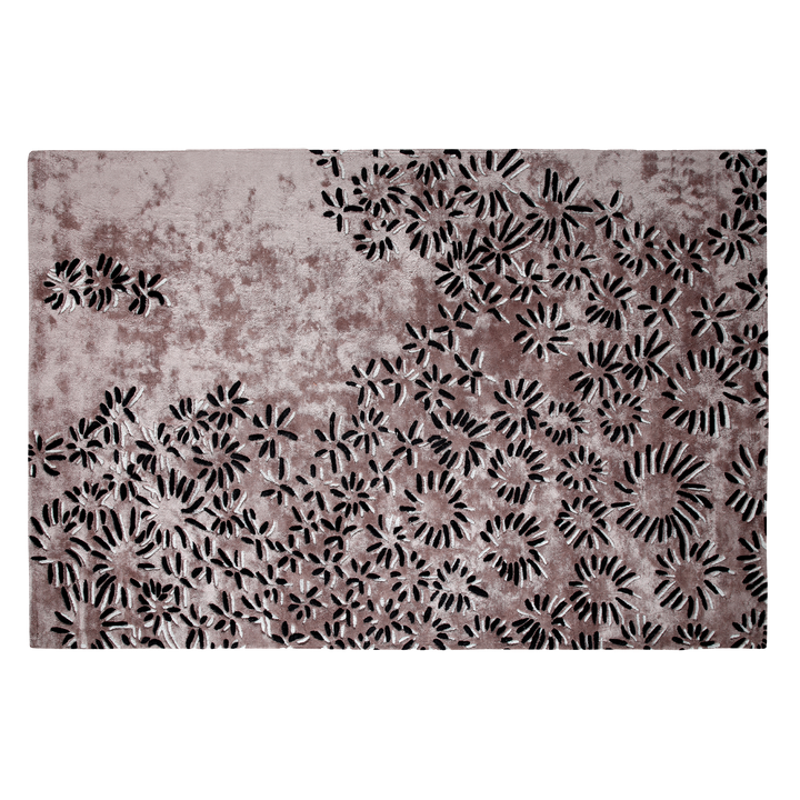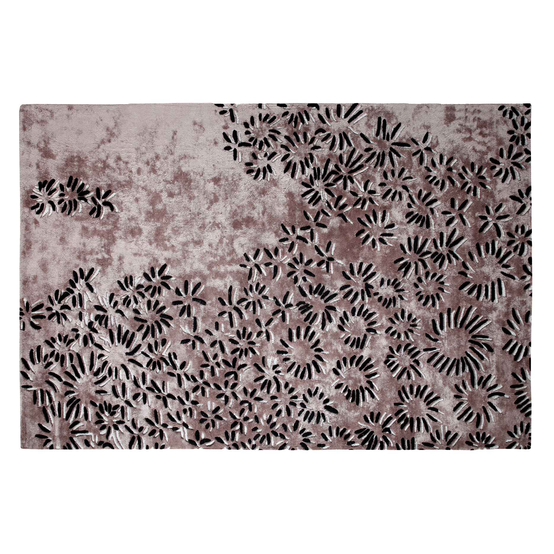 The Bubble Peach Black carpet is a serene tapestry, its intricate pattern reminiscent of a field of wildflowers blooming under a soft, ethereal light. Hand-tufted with meticulous care, this carpet offers a luxurious and tactile experience.