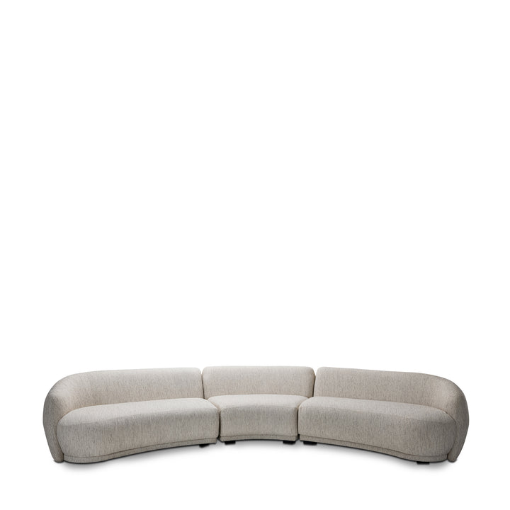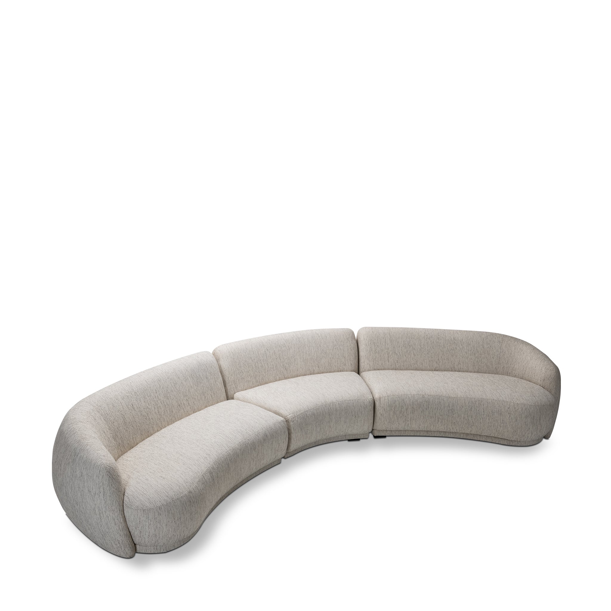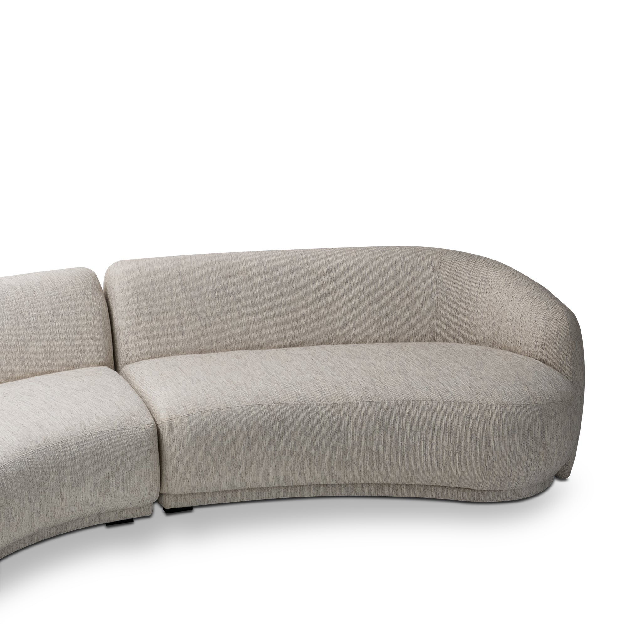 Upholstered in playa fog fabric, designed with a gentle curve that gives it a modern and relaxed feel whether your space is bold or minimal. It is comfortable and made to look good from every angle.