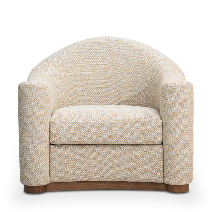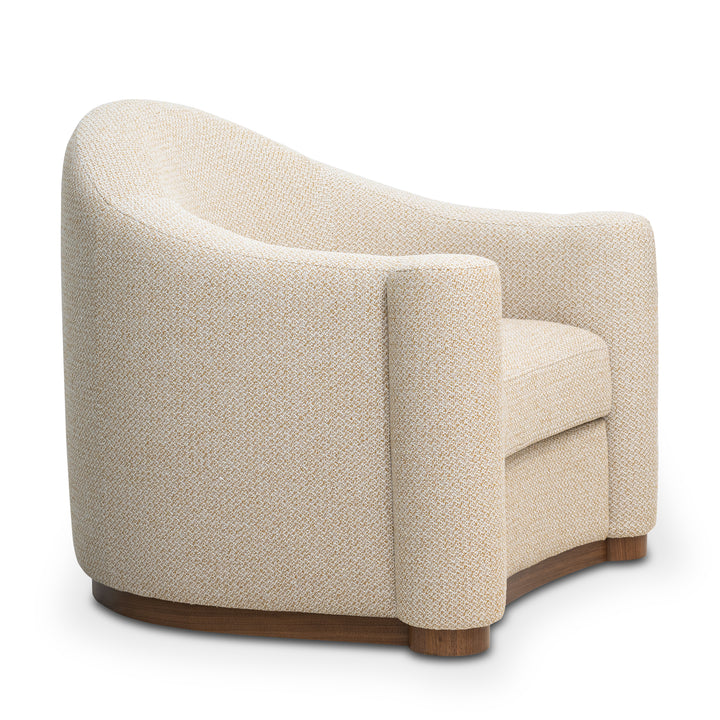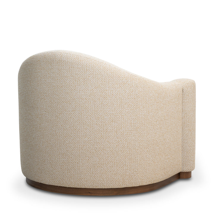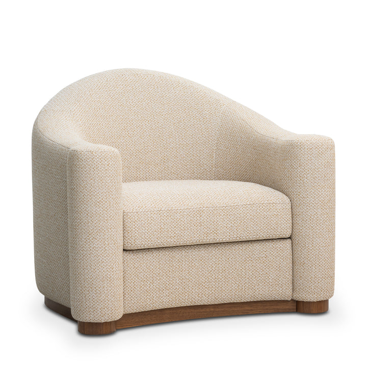 Designed to complement the paris 3-seater sofa, this armchair is upholstered in tuscan sun tinsel chenille and defined by sculpted curves that mid-century modern style. A solid wood plinth base in midtone walnut finish provides a rich foundation, enhancing its timeless appeal.