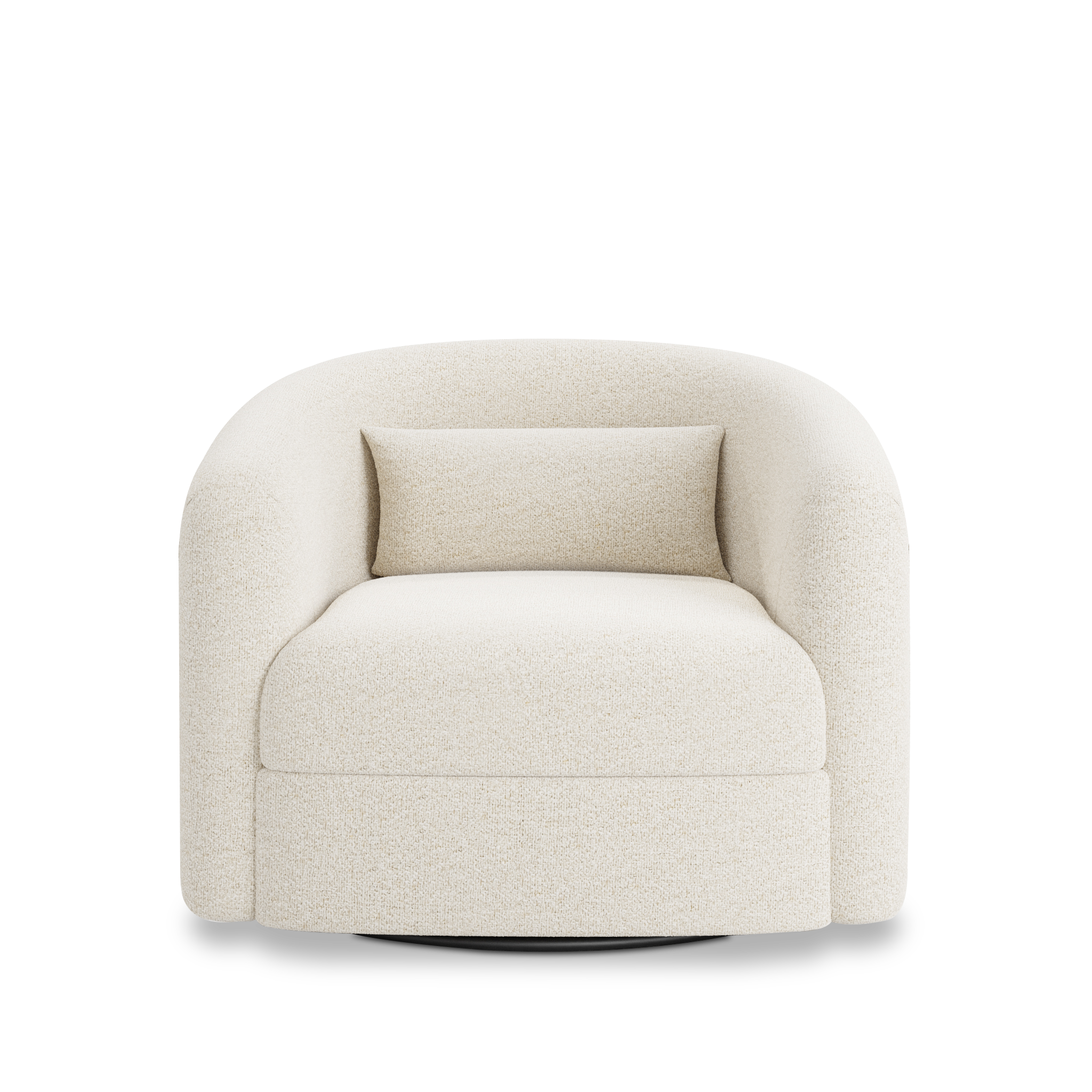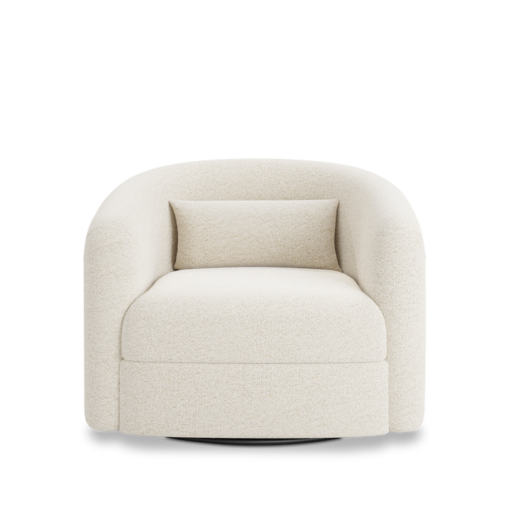 Complementing the colin 285 sofa, this armchair showcases luxury with its upholstery in jute beige fabric. This swivel chair combines comfort and style effortlessly. Its smooth rotation adds flexibility to your space, while the lumbar cushion provides extra support.