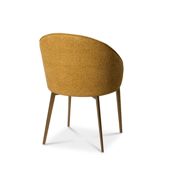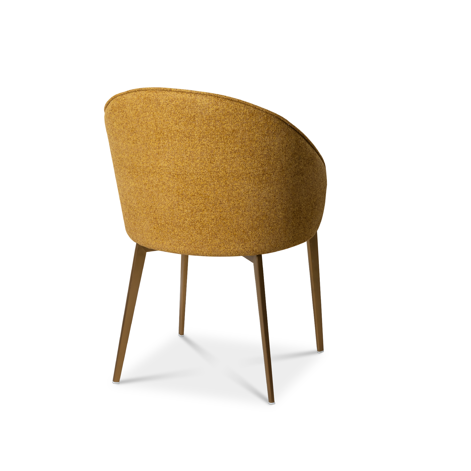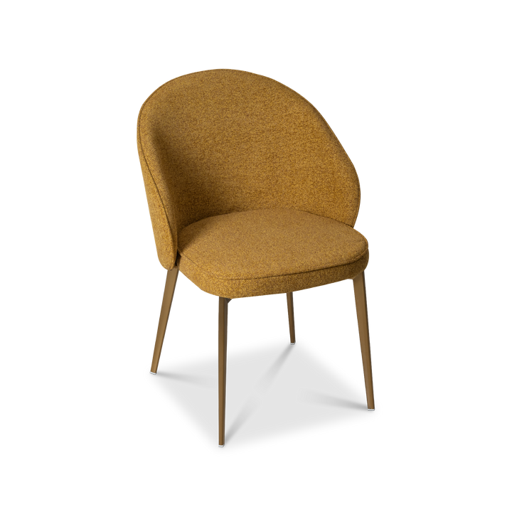This dining chair provides comfort and style to your dining table. Stainless steel legs electroplated in brushed brass provides glow to the overall design.