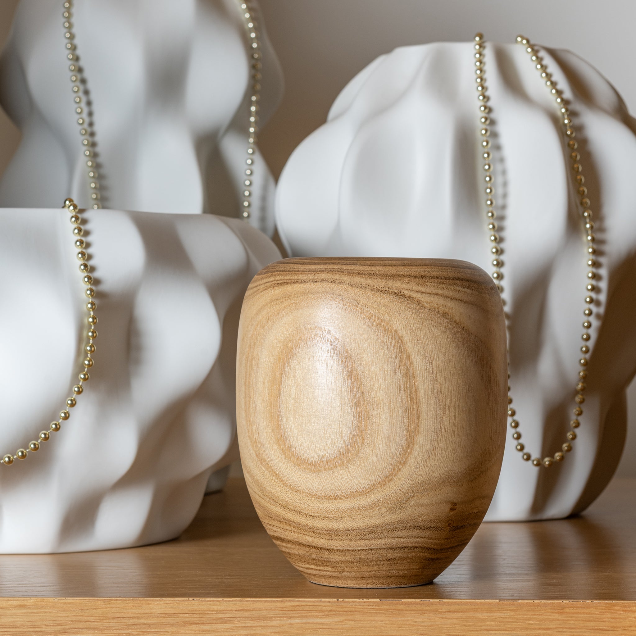 Crafted from paulownia wood, this piece highlights the natural beauty of the wood’s grain. The gentle curves and smooth finish give it a refined, sculptural presence.