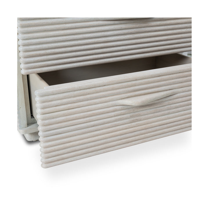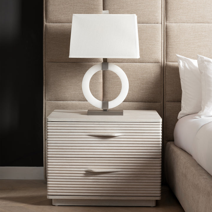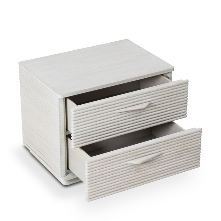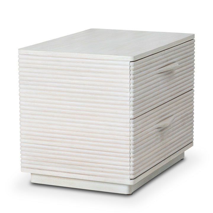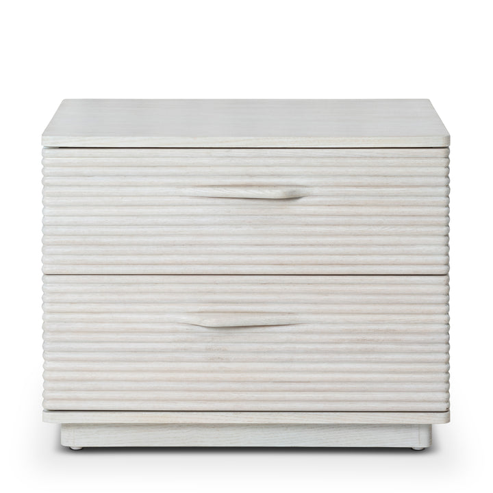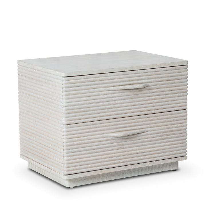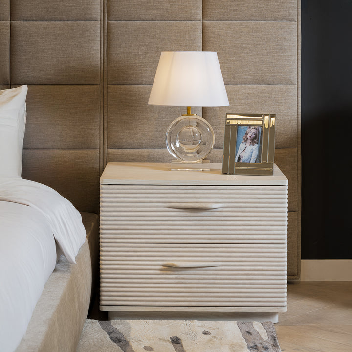 The reeded design in a newport oak finish gives this nightstand a clean and stylish look. Made with solid ash wood and quartered ash veneer, it shows the beauty of natural wood grain. With two drawers for storage, it is both practical and elegant by the bedside.