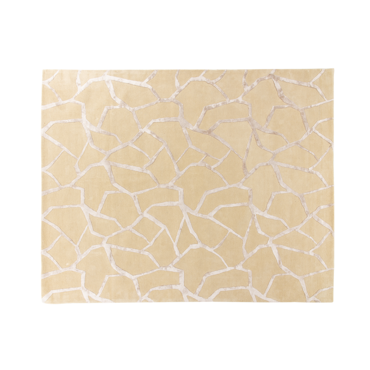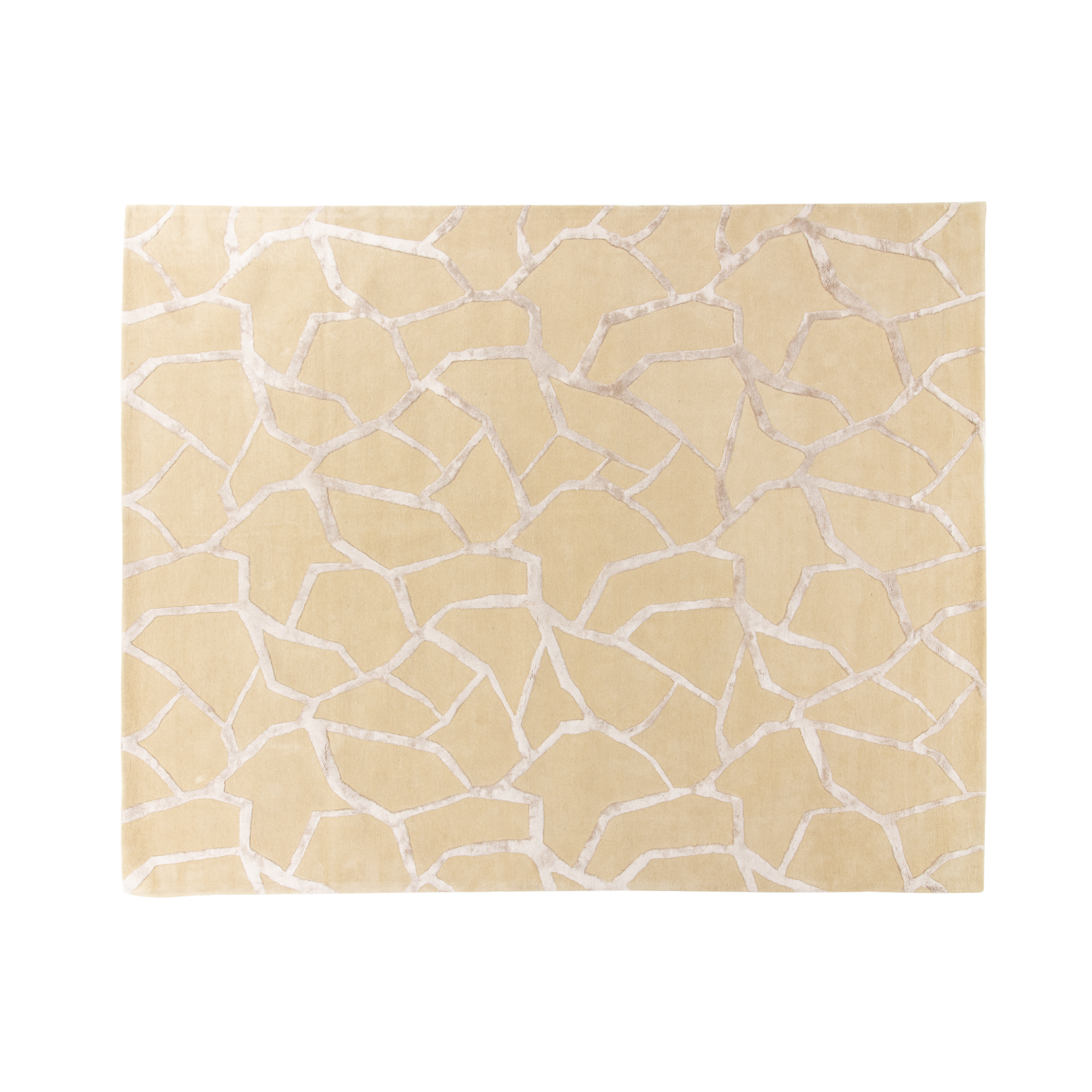 The Moon Beam carpet is a study in contrasts, juxtaposing delicate texture with bold geometric forms. Its intricate, hand-tufted design evokes the ephemeral beauty of shattered glass, while its soft, neutral palette exudes timeless elegance.