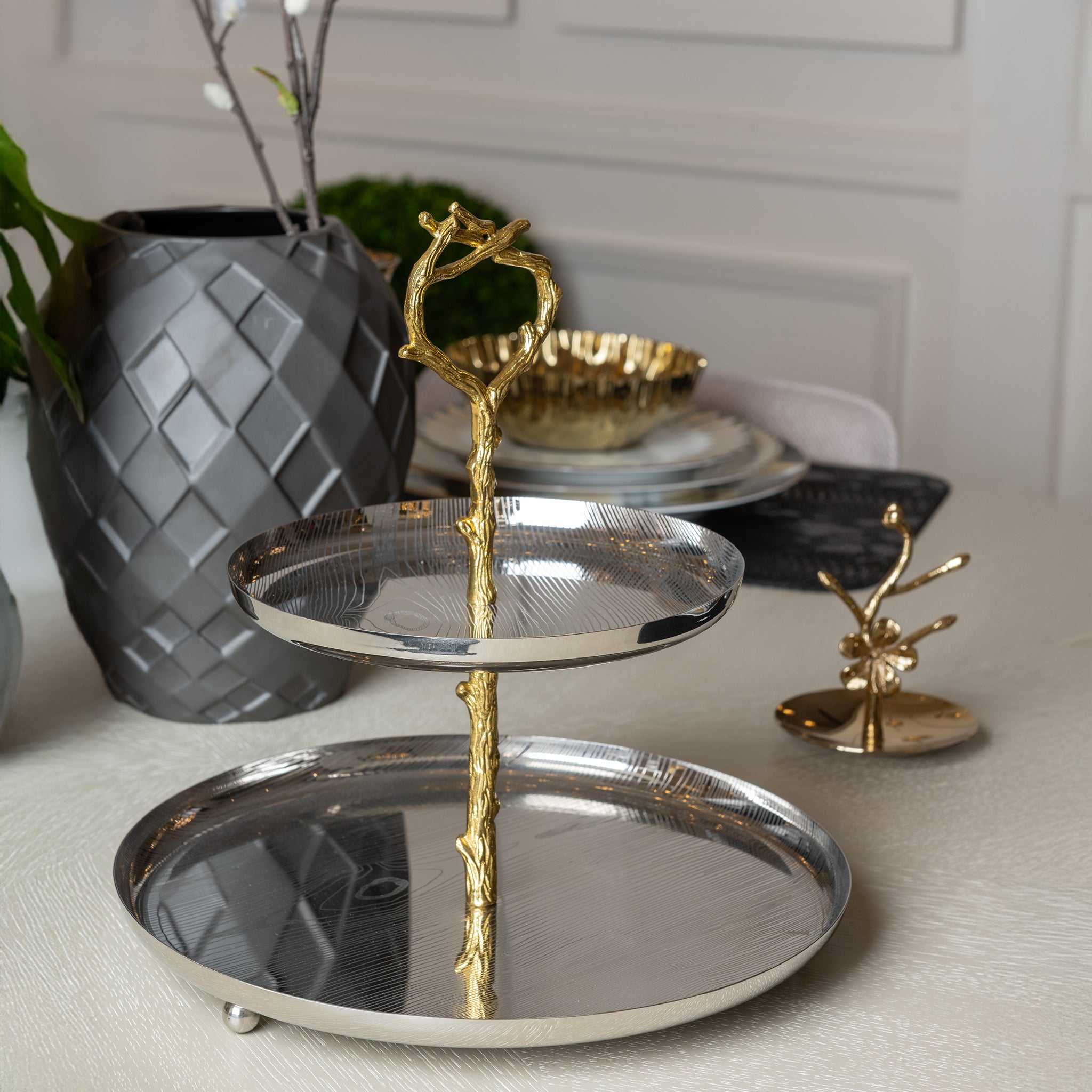 Elegant in form and thoughtfully detailed, this two-tiered stand brings a touch of sophistication to any setting. The sculptural twig design adds an organic element, enhancing its graceful and versatile appeal.