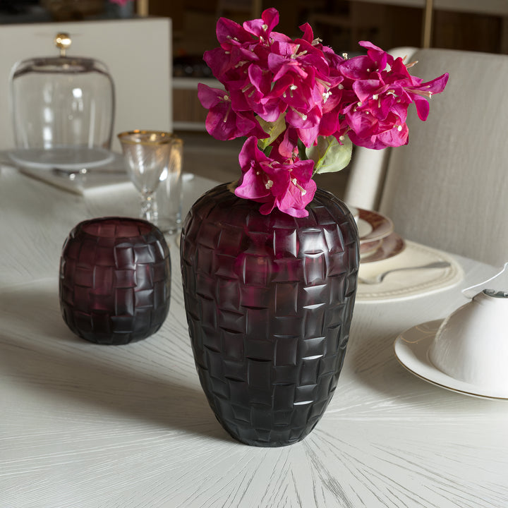 Crafted from glass in a delicate lilac shade, this vase embodies refined simplicity. The dari cut highlights subtle variations, giving each piece its own graceful character.
