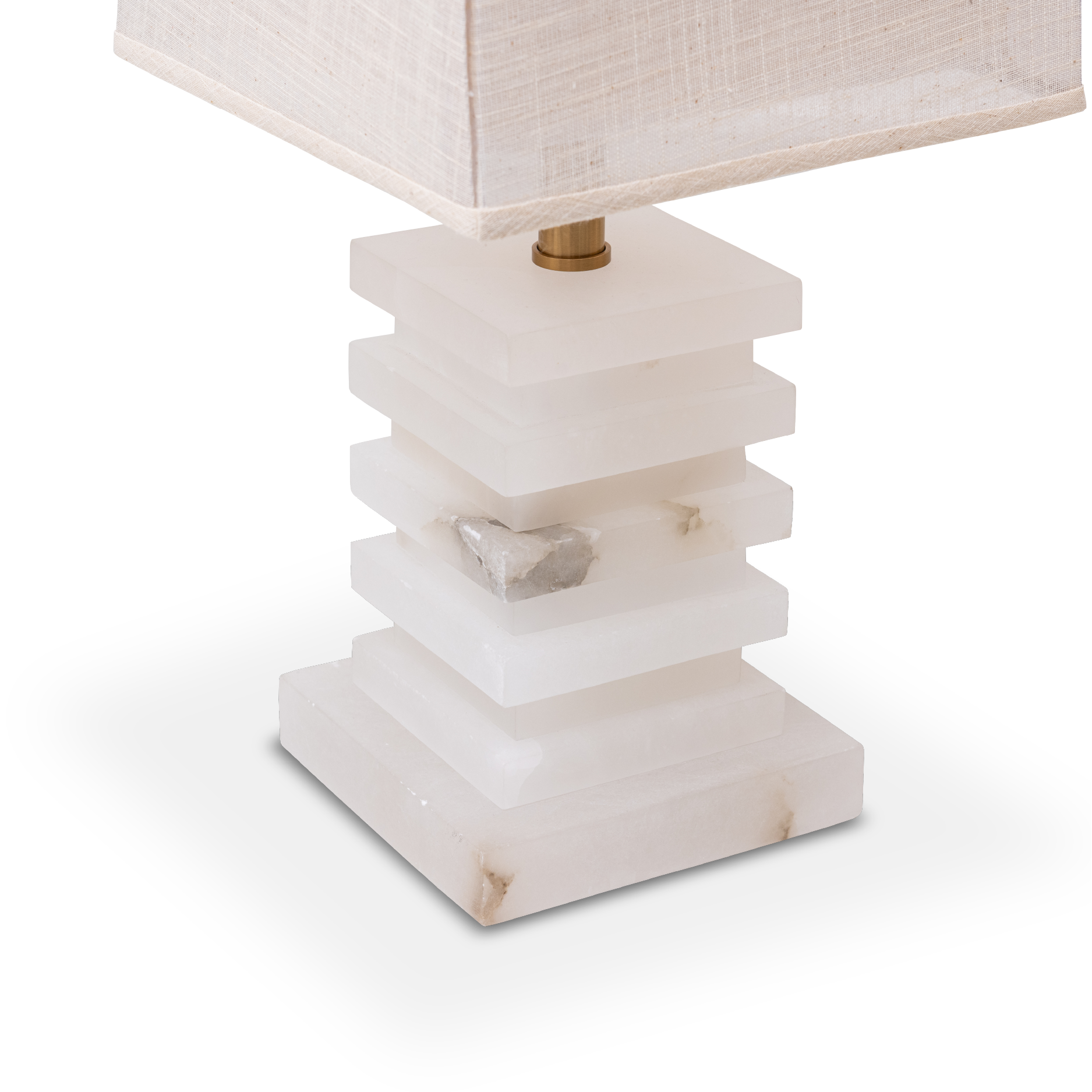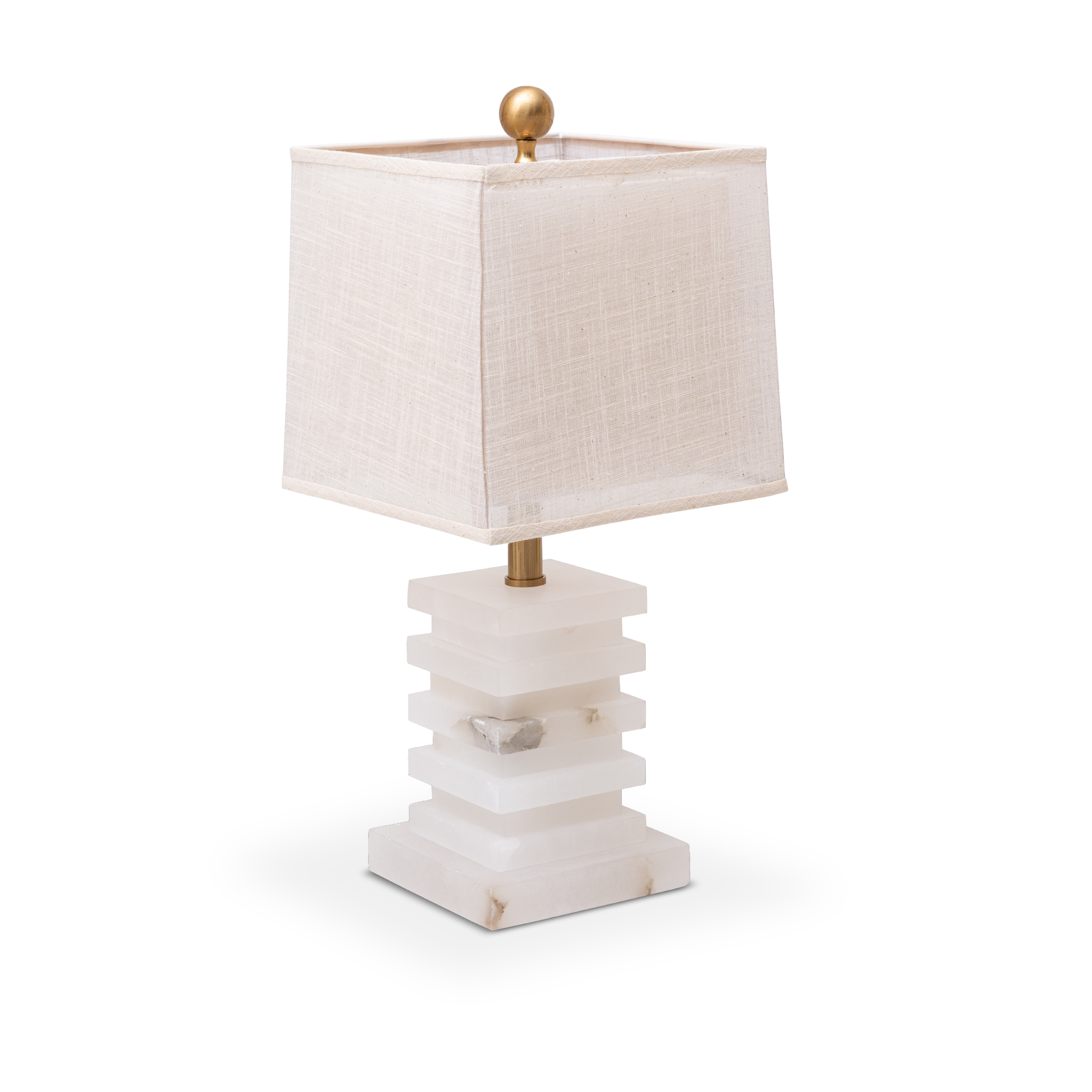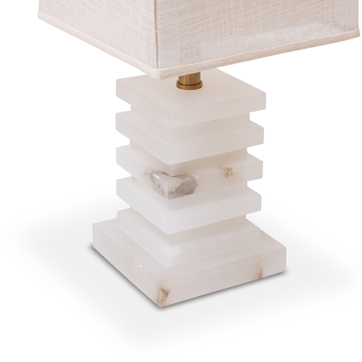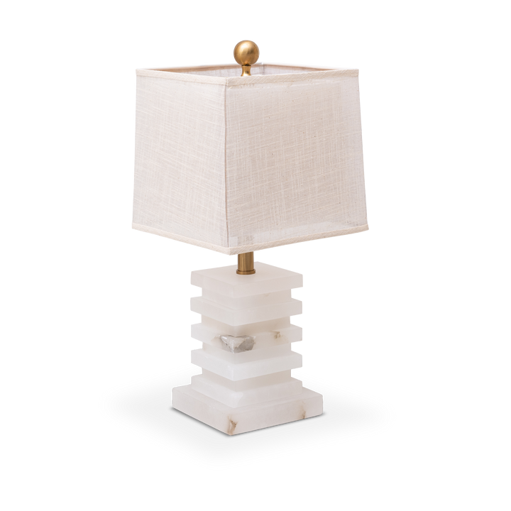 A beautiful blend of style and function, this table lamp features a layered alabaster base that showcases the natural beauty of the stone. Topped with a white fabric shade and accented in a coffee bronze finish, it balances style and sophistication.