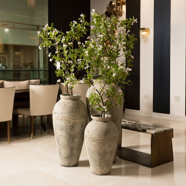 Defined by its terracotta construction and distinctive grey burning color, this vase embodies the essence of organic craftsmanship. The finish enhances the clay’s natural texture, creating a grounded yet elegant presence