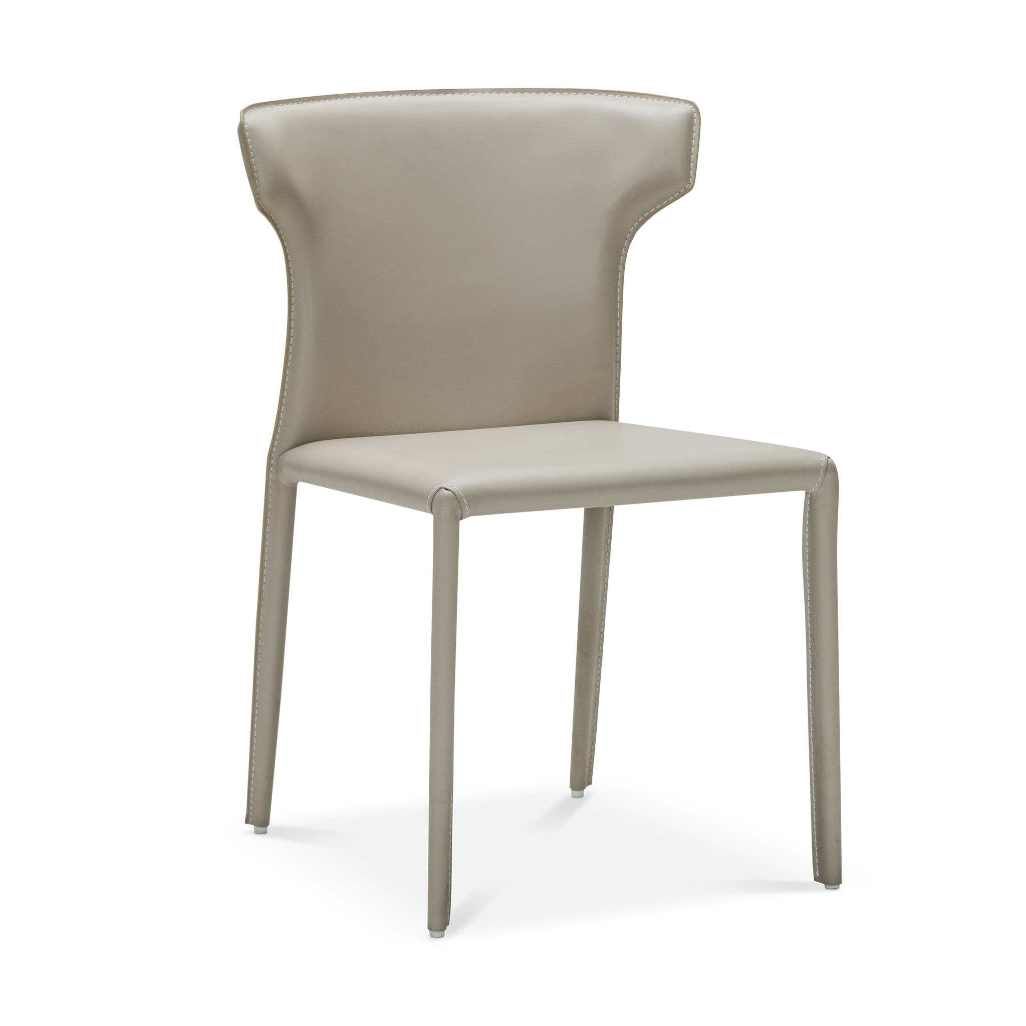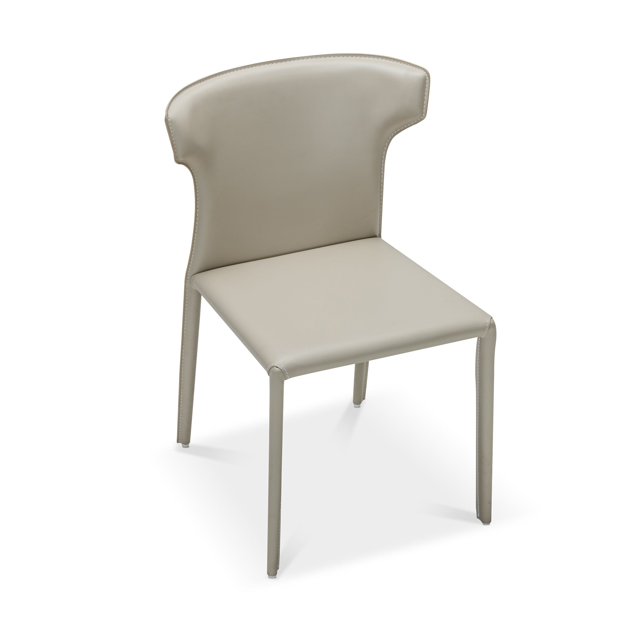 Upholstered in dark beige faux leather, the seat is smooth and tailored with precise stitching that highlights its clean lines. Fully upholstered legs complete the design, giving the chair a seamless and sophisticated presence.